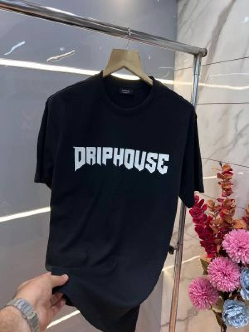 Drip House Black Imported Premium Round Neck Front and Back Printed Tshirt 3098