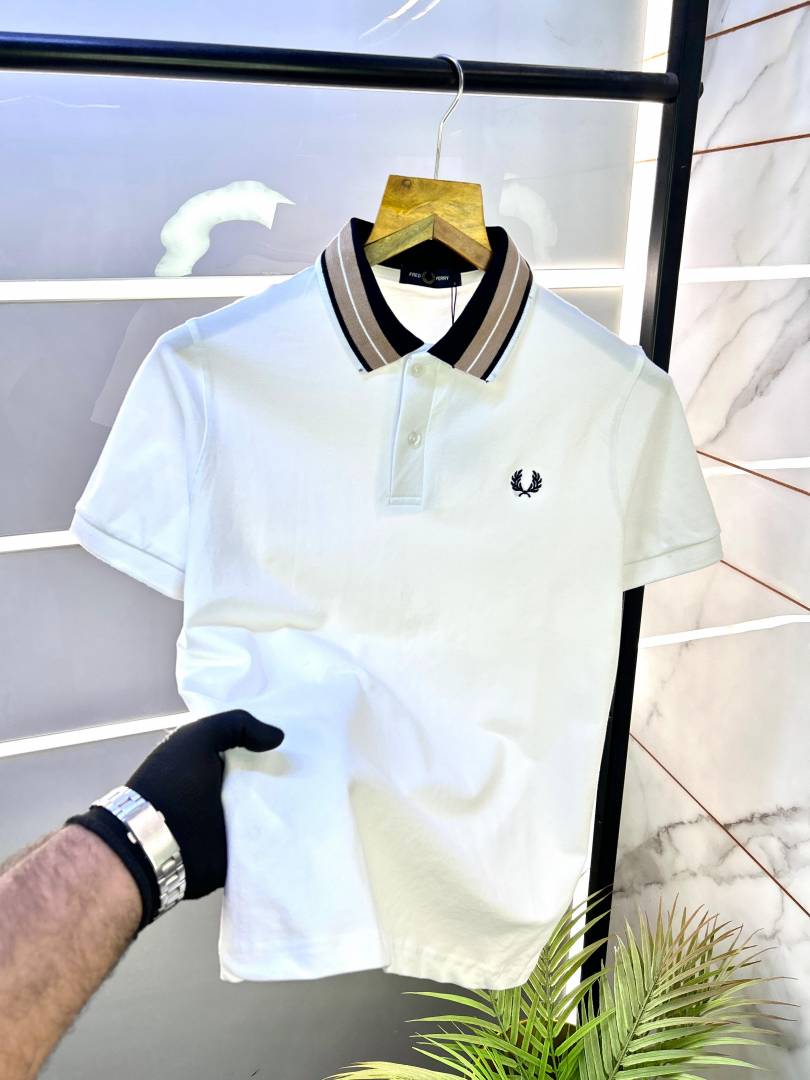 Fred Perry White Polo Premium Collar Neck T-shirt F2872-WH